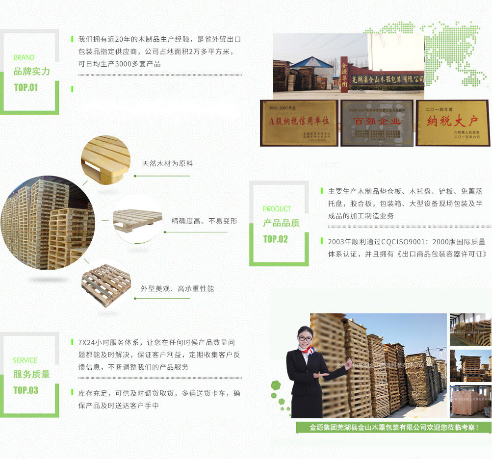 金源集團蕪湖金山木器包裝有限公司是省外貿(mào)出口包裝品指定的供應(yīng)商,主要生產(chǎn)木制品墊倉板、木托盤、鏟板、免薰蒸托盤,膠合板,包裝箱、大型設(shè)備現(xiàn)場包裝及半成品的加工制造業(yè)務(wù)。產(chǎn)品廣泛用于物流,倉儲,港口,碼頭,機械,建材,化工,紡織,食品,超市,五金電器等行業(yè)。公司占地面積2萬多平方米,注冊資金壹佰壹拾捌萬圓整,公司擁有員工160多人,其中技術(shù)人員占25%,可日均生產(chǎn)3000多套產(chǎn)品,年產(chǎn)值6000多萬元,公司下轄木材加工廠,組裝廠,并備有大型標(biāo)準(zhǔn)烘房,多功能平板刨,壓刨,挖槽,機械設(shè)備等。產(chǎn)品主要銷往國內(nèi)大中型城市并隨貨通行出口國外。